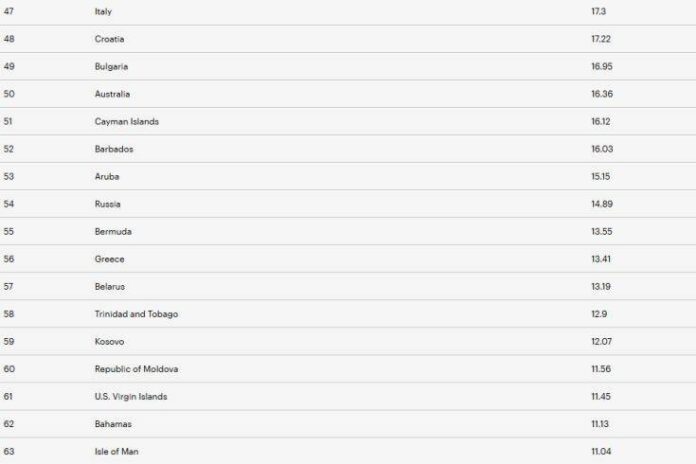Οι ΗΠΑ βρίσκονται στην 15η θέση με 32,3 Mbps. Από τις 25 πρώτες χώρες, οι 18 είναι ευρωπαϊκές.