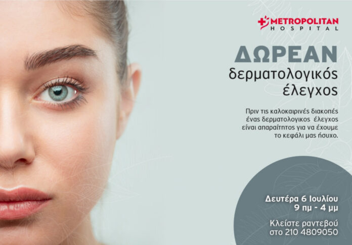 Φέτος, ο τόσο απαραίτητος καλοκαιρινός δερματολογικός έλεγχος προσφέρεται δωρεάν σε όλους, από το Metropolitan Hospital (στο πλαίσιο της εταιρικής κοινωνικής ευθύνης).