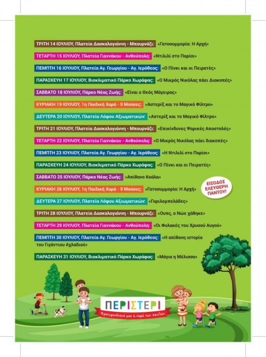 Ιούλιος με παιδικές ταινίες στα πάρκα και τις πλατείες του Δήμου Περιστερίου