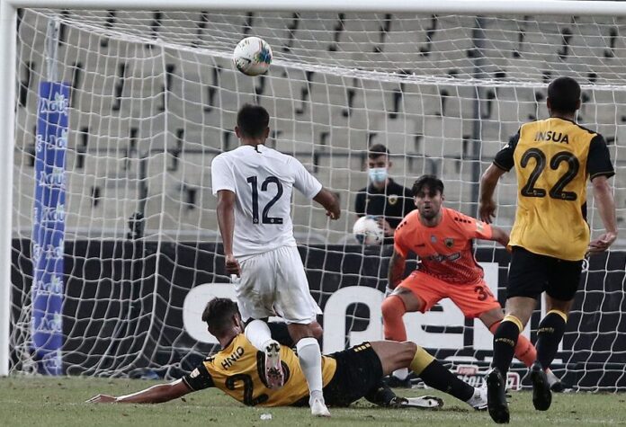 Η ομάδα του Περιστερίου είχε την ευκαιρία να κάνει το 2-0 ξανά από κόρνερ. Ο Μανούσος πήρε την κεφαλιά, αλλά η μπάλα σταμάτησε στο δοκάρι. Ωστόσο, η ΑΕΚ έφυγε στην κόντρα επίθεση, ο Λιβάγια τροφοδότησε τον Παουλίνιο, ο οποίος πλάσαρε τον Γιαννιώτη για το 1-1. Το πρώτο ημίχρονο ολοκληρώθηκε με αυτό το αποτέλεσμα.