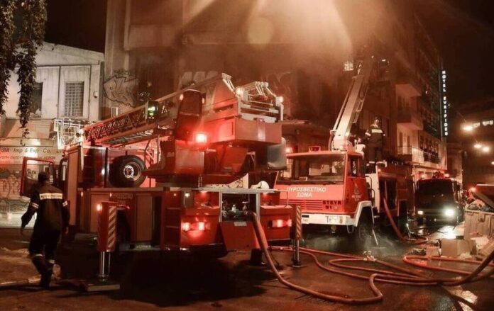 Οι πυροσβέστες απεγκλώβισαν με κλιμακοφόρο όχημα από άλλα διαμερίσματα της πολυκατοικίας ακόμη τρία άτομα.