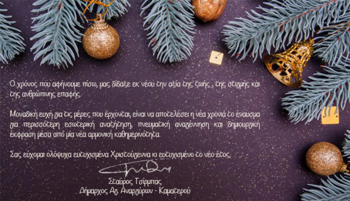 Σας εύχομαι ολόψυχα ευτυχισμένα Χριστούγεννα κι ευτυχισμένο το νέο έτος.