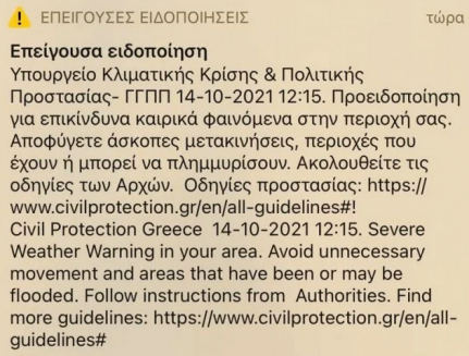 Μήνυμα από το 112 έλαβαν και οι κάτοικοι της Αττικής το μεσημέρι της Πέμπτης στις 12:15 για την κακοκαιρία Μπάλλος που έχει επισκεφθεί τη χώρα μας.