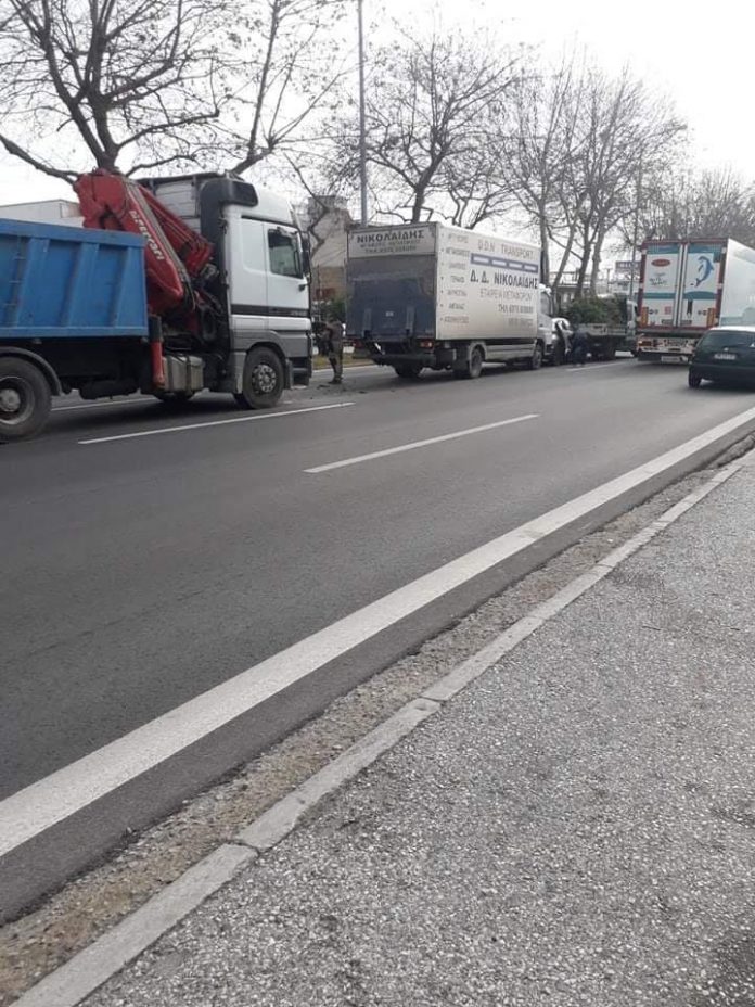Στην καραμπόλα έχουν εμπλακεί τρία φορτηγά και ένα ΙΧ αυτοκίνητο. Ευτυχώς έχουν προκληθεί μόνο υλικές ζημιές.