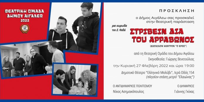 Ο Δήμος Αιγάλεω σας προσκαλεί στη θεατρική παράσταση «Στρίβειν διά του