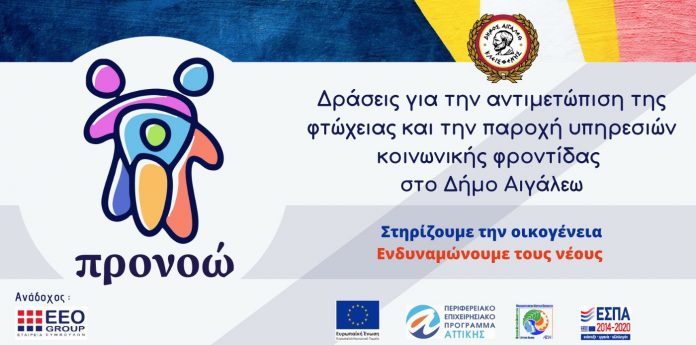 Ο Δήμος Αιγάλεω στο πλαίσιο της ΟΧΕ/ΒΑΑ υλοποιεί το πρόγραμμα “προνοώ” μέσω του οποίου επιδιώκεται η πρόληψη και αντιμετώπιση της φτώχειας αλλά και η στήριξη της κοινωνικής ένταξης των κοινωνικά ευπαθών ομάδων του πληθυσμού.