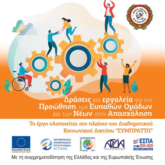 Ο Δήμος Αιγάλεω μέσω του Διαδημοτικού Κοινωνικού Δικτύου «ΣΥΜΠΡΑΤΤΩ», προσεγγίζει το ζήτημα της ανεργίας βοηθώντας άτομα που ανήκουν σε κοινωνικά ευπαθείς ομάδες να αποκτήσουν τα κατάλληλα εφόδια, υλοποιώντας δράσεις εργασιακής ένταξης.