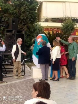 Με μια εξαιρετική μουσική εκδήλωση, την Κυριακή 15 Μαΐου στις 7.00μ.μ., στην πλατεία Αγίας Ελεούσας, έγιναν τα αποκαλυπτήρια του εμβληματικού γλυπτού του Δημαρχείου «η μοναχική πορεία του κόσμου» από τον δήμαρχο, τον γλύπτη και τους διευθυντές των υπηρεσιών του δήμου.