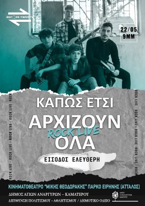 Ροκ συναυλία την Κυριακή 22 Μαΐου 2022 στο Πάρκο Ειρήνης από τους Before Twenty με είσοδο ελεύθερη.
