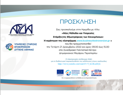 Ημερίδα “Νέες Μέθοδοι και Υπηρεσίες Στήριξης της Εξωστρέφειας των Επιχειρήσεων