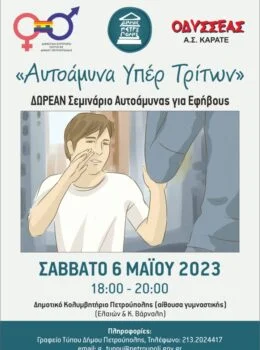 Ο Δήμος Πετρούπολης και η Δημοτική Επιτροπή Ισότητας (ΔΕΠΙΣ) Πετρούπολης, διοργανώνουν ΔΩΡΕΑΝ Σεμινάριο Αυτοάμυνας για εφήβους με τίτλο «Αυτοάμυνα Υπέρ Τρίτων», σε συνεργασία με τον Αθλητικό Σύλλογο Καράτε «ΟΔΥΣΣΕΑΣ».