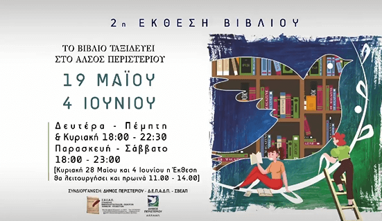 Την Παρασκευή 19 Μαΐου 2023, ώρα 18:00, ανοίγει τις πύλες της η Έκθεση Βιβλίου στο Άλσος Περιστερίου (στάση Μετρό «Ανθούπολη»), την οποία συνδιοργανώνουν ο Δήμος Περιστερίου και ο Σύλλογος Βιβλιοχαρτοπωλών – Εκδοτών Αθηνών & Προαστίων, υπό την αιγίδα της ΠΟΕΒ.
