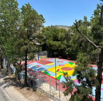 Το γήπεδο έχει ανακατασκευαστεί πλήρως με ενέργειες του Δήμου Χαϊδαρίου. Ευχαριστούμε θερμά τον γνωστό καλλιτέχνη Βασίλη Καρούκ για τη δημιουργία του έργου, το οποίο διακοσμεί το νέο δάπεδο του χώρου. Το αποτέλεσμα της εικαστικής παρέμβασης είναι πράγματι εντυπωσιακό!