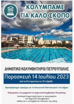 Ο Δήμος Πετρούπολης διοργανώνει μια ξεχωριστή φιλανθρωπική Εκδήλωση την Παρασκευή 14 Ιουλίου 2023, στη μεγάλη πισίνα του Δημοτικού Κολυμβητηρίου (Κώστα Βάρναλη 1 & Ελαιών).