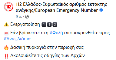 Μήνυμα έχει αποσταλεί από το 112 για εκκένωση της Φυλής μετά από τη φωτιά που ξέσπασε σήμερα και έχει περικυκλώσει τη Μονή Κλειστών καίγοντας δασική έκταση.