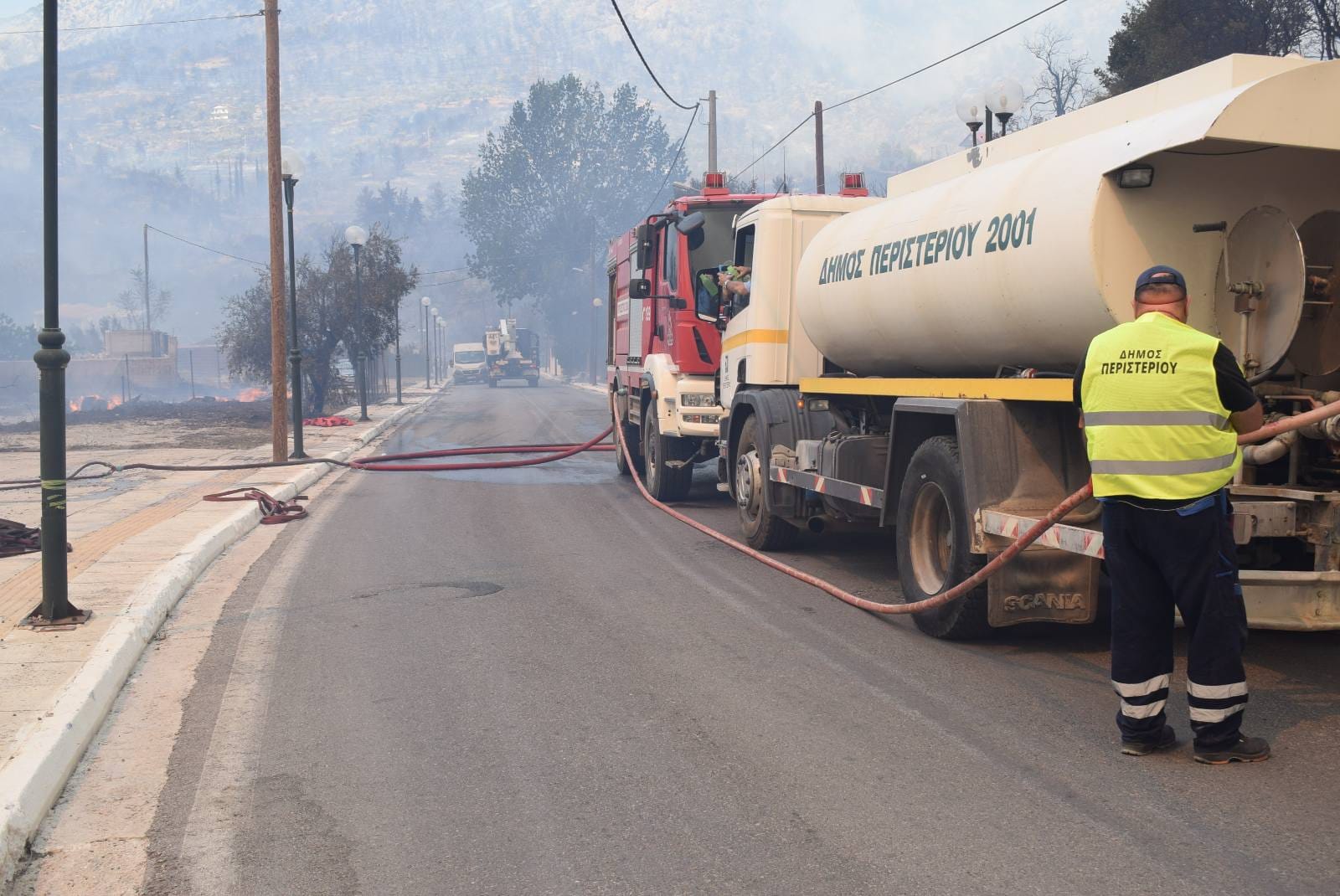Στην πρώτη γραμμή των πυρκαγιών βρίσκεται ο Δήμος Περιστερίου, από χθες το μεσημέρι στις περιοχές Πάρνηθας, Φυλής, Μενιδίου, Χασιάς και Ασπροπύργου, με υδροφόρες και προσωπικό της Πολιτικής μας Προστασίας.