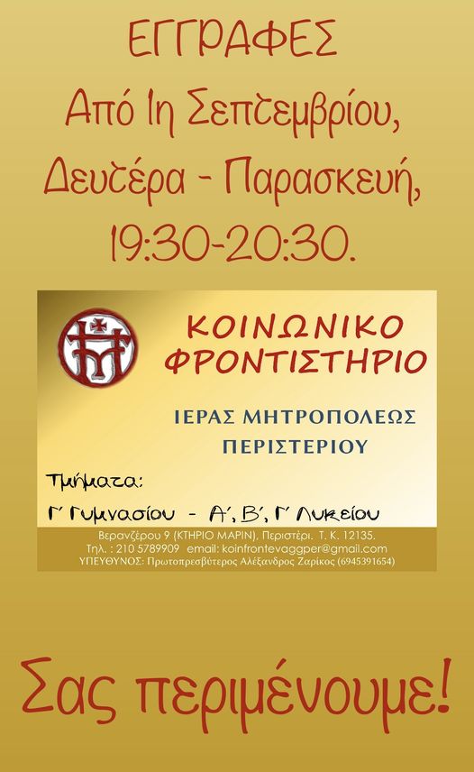 Διεύθυνση: Βερανζέρου 9 koinfrontevaggper@gmail.com Ὑπεύθυνος: Ζαρῖκος Ἀλέξανδρος 6945391654