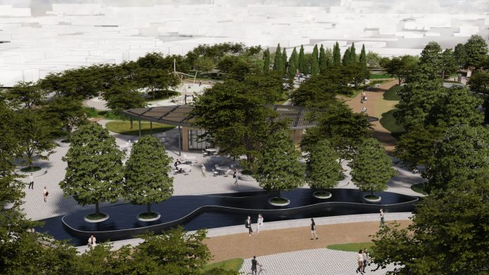 3.563 νέα δέντρα, 102.000 θάμνοι, κήποι βροχής, τεχνητοί λόφοι και μια λίμνη 950 τ.μ. στο νέο πάρκο