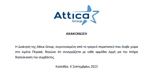 Η ανακοίνωση της εταιρίας δηλώνει συγκλονισμένη: