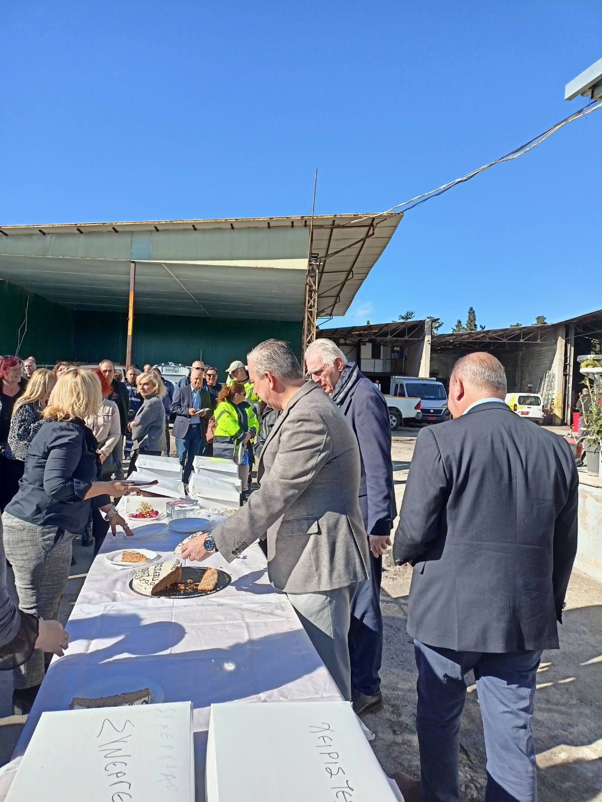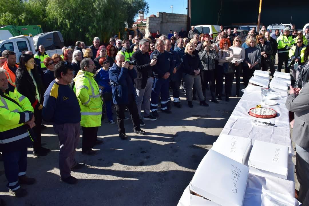 Το τμήμα Καθαριότητας με αρμόδιο Αντιδήμαρχο τον Παναγιώτη Λύκο και το τμήμα Πρασίνου του Δήμου Περιστερίου με Αντιδήμαρχο τον Ιωάννη Καλαντώνη, μέσα σε κλίμα γιορτής έκοψαν την πρωτοχρονιάτικη πίτα τους, παρουσία του Δημάρχου Ανδρέα Παχατουρίδη στο γκαράζ του Δήμου.
