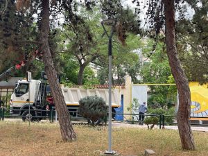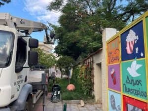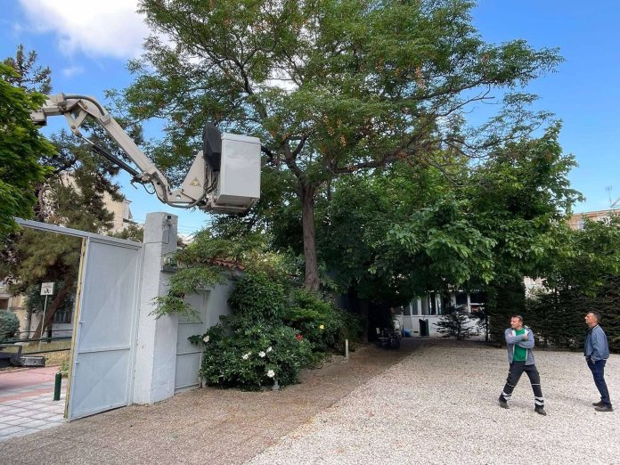 Εχθές 15 Μαΐου στο Δημοτικό θερινό κινηματογράφο ΣΙΝΕ ΠΕΡΑΝ πραγματοποιήθηκε ο έλεγχος και ο καθαρισμός των δέντρων προκειμένου με ασφάλεια να παρακολουθούμε τις ταινίες από την επόμενη εβδομάδα στον καταπράσινο κήπο.