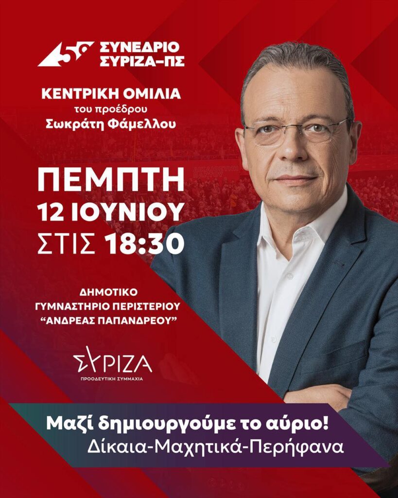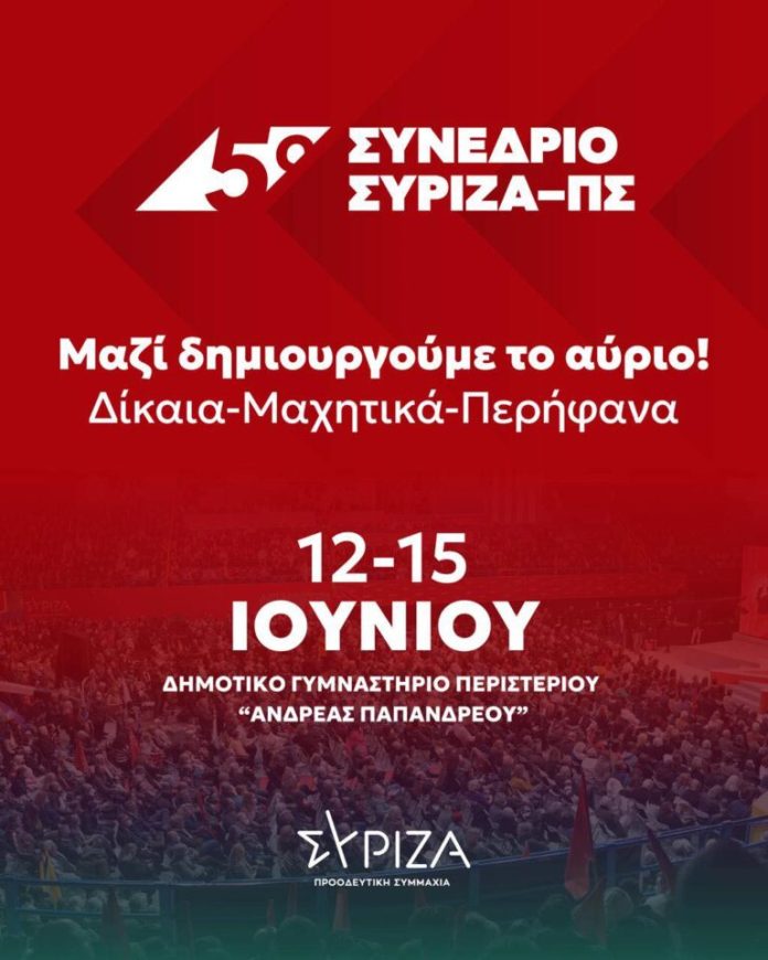Αρχίζουν σήμερα Πέμπτη 12 Ιουνίου 2025 οι εργασίες του 5ου Συνεδρίου του ΣΥΡΙΖΑ-Προοδευτική Συμμαχία, το οποίο θα διεξαχθεί στις εγκαταστάσεις του Δημοτικού Γυμναστηρίου Μπάσκετ Περιστερίου (Γιαννιτσών 110, Περιστέρι).