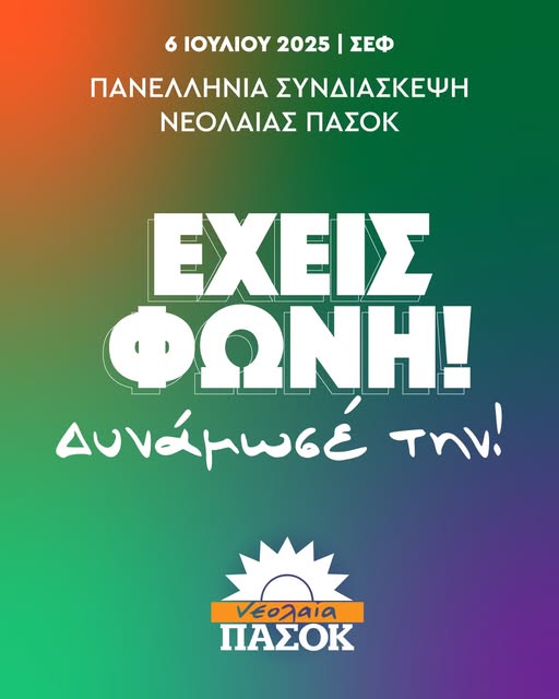 Το Δίκτυο Νεολαίας του ΠΑΣΟΚ – Κινήματος Αλλαγής απευθύνει ανοιχτό κάλεσμα για συμμετοχή στην Πανελλαδική του Συνδιάσκεψη, ένα μεγάλο πολιτικό γεγονός διαλόγου για τη διαμόρφωση της επόμενης μέρας, που θα διεξαχθεί στις 6 Ιουλίου στο ΣΕΦ.