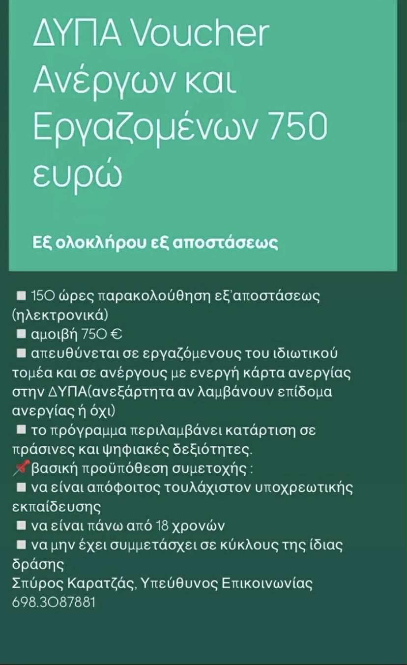 ΔΥΠΑ Voucher Ανέργων και Εργαζομένων 750 ευρώ