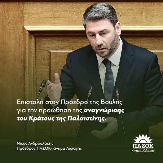 Επιστολή Νίκου Ανδρουλάκη, Προέδρου ΠΑΣΟΚ-Κινήματος Αλλαγής στον Πρόεδρο της Βουλής Νικήτα Κακλαμάνη
