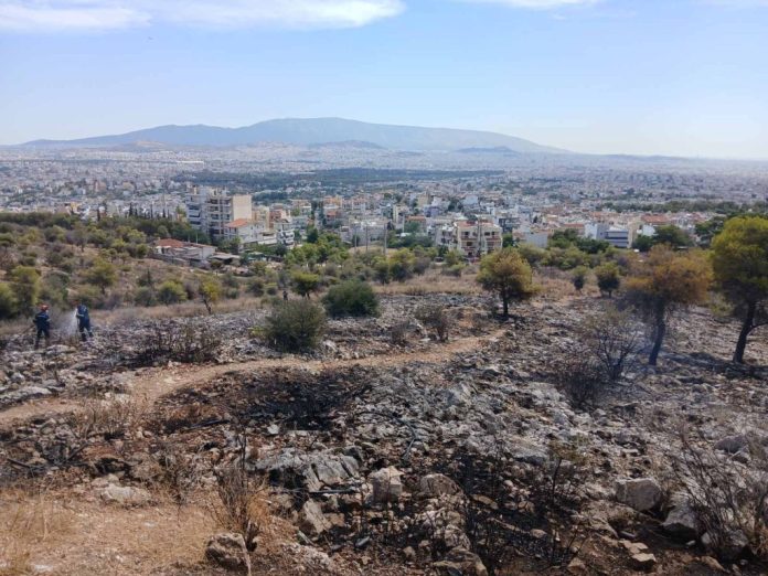 Πρόλαβε να κάψει 2-3 στρέμματα αραιής θαμνώδους βλάστησης και πολύ λίγα δέντρα. Σύμφωνα με τις πρώτες, μακροσκοπικές, εκτιμήσεις των παρόντων, η φωτιά φαίνεται να προκλήθηκε από καταστροφή μονωτή καλωδίου μέσης τάσης σε μικρού ύψους μεταλλικό πυλώνα της ΔΕΗ.