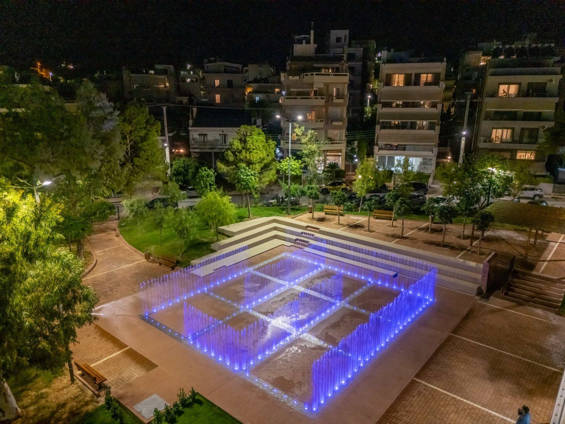 Συναρπαστικό, δροσιστικό και ασφαλές, με εναλλαγές χρωμάτων και εντυπωσιακές υδάτινες χορογραφίες, το διαδραστικό σιντριβάνι στην πλατεία Καραϊσκάκη είναι το νέο σημείο αναφοράς για την Τερψιθέα Γλυφάδας.