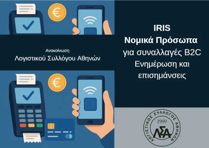 Ο Λογιστικός Σύλλογος Αθηνών ενημερώνει τις επιχειρήσεις σχετικά με τη νέα υποχρέωση αποδοχής πληρωμών μέσω υπηρεσιών άμεσης πληρωμής (IRIS) από τα νομικά πρόσωπα, όπως αυτή θεσπίστηκε με το άρθρο 219 του ν. 5193/2025 (ΦΕΚ Α’ 56/11-04-2025).