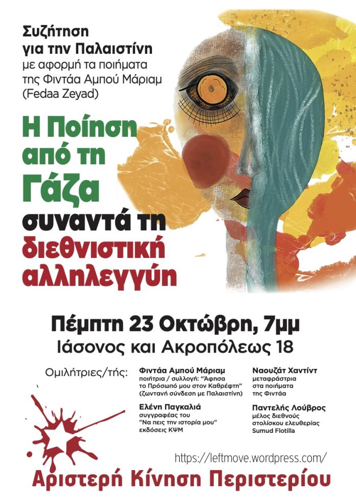 Αριστερή Κίνηση Περιστερίου: Εκδήλωση – συζήτηση «Η Ποίηση από τη Γάζα συναντά τη διεθνιστική αλληλεγγύη»