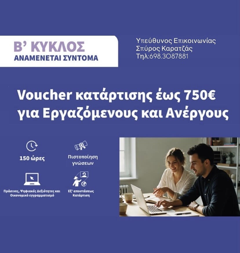 Voucher κατάρτισης έως 750€ για Εργαζόμενους και Ανέργους